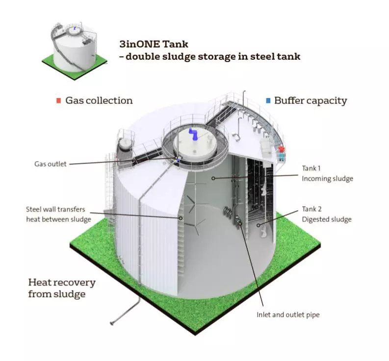 This led to the development of a multifunctional sludge storage tank, the 3inONE Tank.