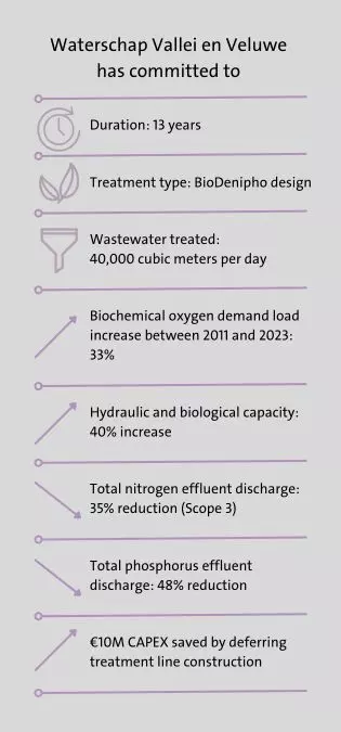The Ede wastewater treatment plant (WWTP) in the Netherlands, operated by Waterschap Vallei en Veluwe, serves a 300,000 population equivalent. Facing increased load and anticipated growth of 20%, the plant was struggling to meet EU effluent standards.