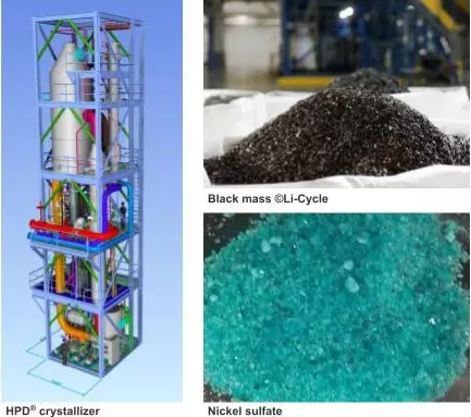 Veolia’s HPD crystallization technology is key in a final stage of the battery recycling process as it allows to optimize the creation of nickel sulfate and cobalt sulfate from lithium-ion batteries, and transform them into high-purity raw materials, ready to be used in new batteries. Li-Cycle will utilize Veolia’s HPD crystallizers to produce approximately 42,000 to 48,000 Metric tons per year of nickel sulfate and 6,500 to 7,500 Metric tons per year of cobalt sulfate that can then be resold to battery manufacturers – ultimately giving the original battery materials a new life. When fully operational in 2023, the Rochester facility will help create a sustainable, circular economy for lithium-ion batteries.