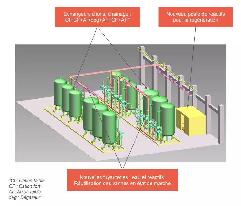 EDF a confié à Veolia Water STI (Solutions & Technologies pour l'Industrie) le contrat de rénovation de cette unité existante.