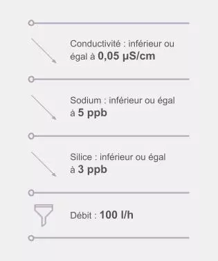 En cohérence avec la stratégie énergétique nationale française visant à réduire les émissions de gaz à effet de serre, nos experts ont proposé une solution composée de trois unités de production d'eau déminéralisée identiques et évolutives, comprenant une unité d’osmose inverse Sirion™ Mini et un cylindre en résine mixte de la gamme Aquadem™ White.